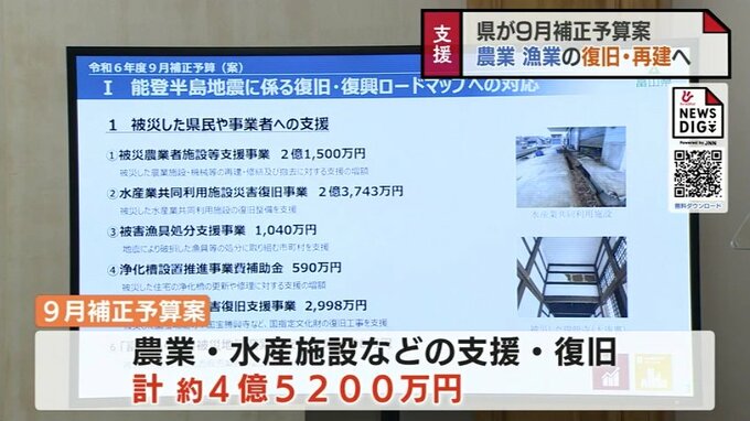 富山県は能登半島地震で被害を受けた農業や漁業の再建を全面的に支援します。