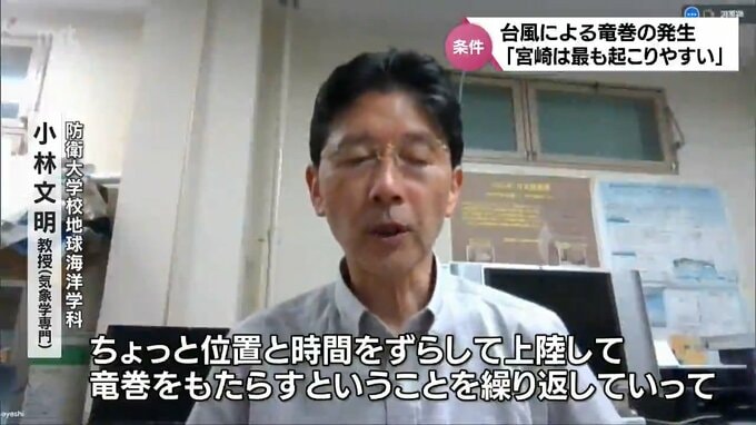 「(積乱雲の列)1個が通り過ぎても、また、次のものがちょっと位置と時間をずらして上陸して竜巻をもたらすということを繰り返していって、結果的にいろんな場所で複数の竜巻が起こったと考えるのが自然ではないか」