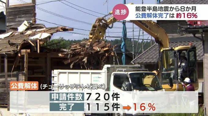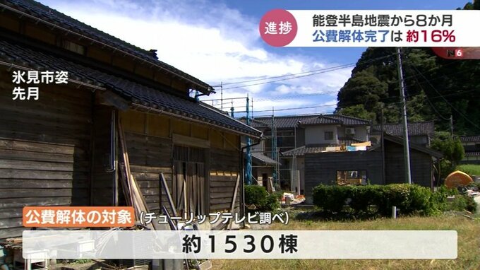 能登半島地震から8か月。富山県で被害を受けた建物のうち公費解体が完了したのは申請があった件数のおよそ16パーセントにとどまっていることが分かりました。