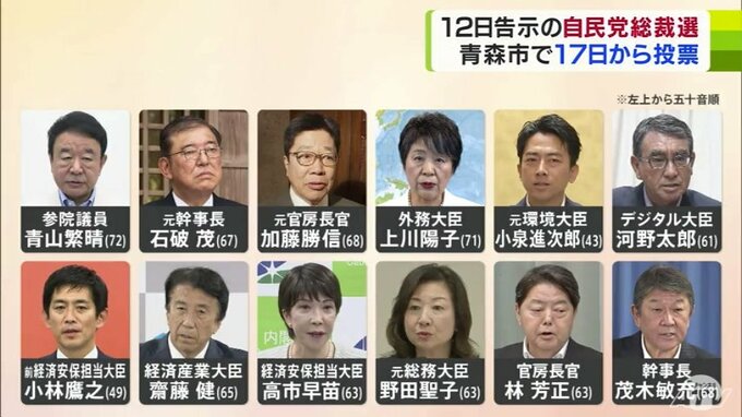 総裁選を巡っては現在12人が出馬を表明、もしくは意欲を見せています。