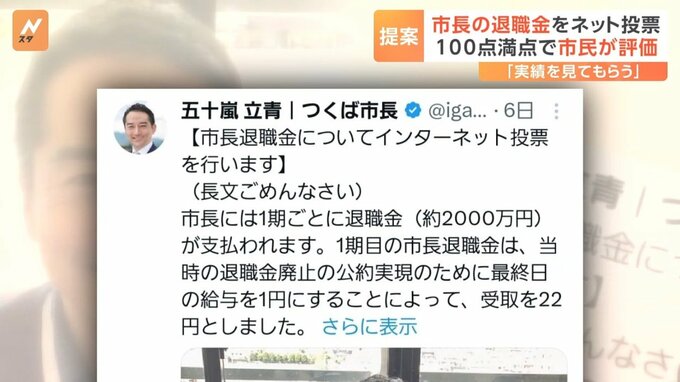 茨城県・つくば市の市長が、自身の退職金の金額を市民に決めてもらう条例を提案しています。15歳以上ならスマホのアプリから投票できるという今回のアイディア。市民はどう評価するのでしょうか。