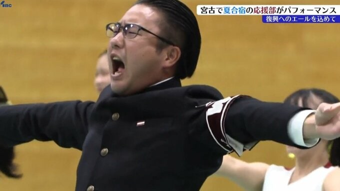 岩手県宮古市で現在、夏合宿を行っている早稲田大学応援部が1日、東日本大震災からの復興へのエールを込めて大迫力のパフォーマンスを市民に披露しました。宮古市民総合体育館シーアリーナで応援パフォーマンスを…