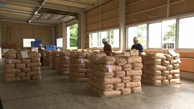 倉庫に集められたのは、JAいわて中央の管内が岩手県内一の生産地となっている町内産のもち米の「ヒメノモチ」およそ50トンです。