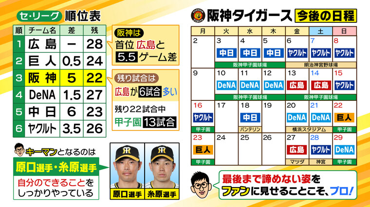 ―――9月の“逆襲”のキーマンに、矢野さんは原口文仁選手と糸原健斗選手を挙げました。