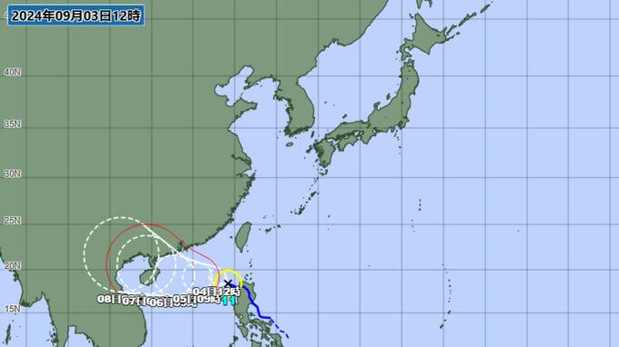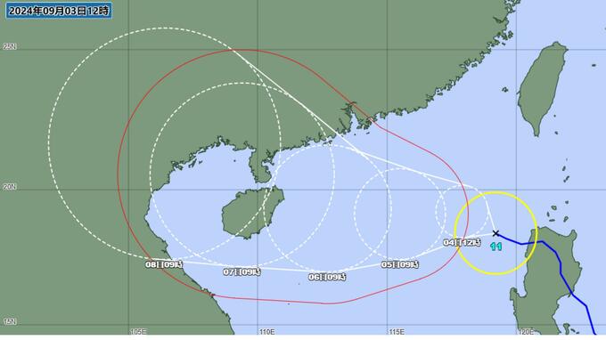 台風11号(ヤギ)はフィリピンを通過し、3日正午現在は南シナ海を時速20キロで西北西へ進んでいます。今後は急速に発達し、6日には非常に強い勢力になってベトナム方面へ進む予想となっています。