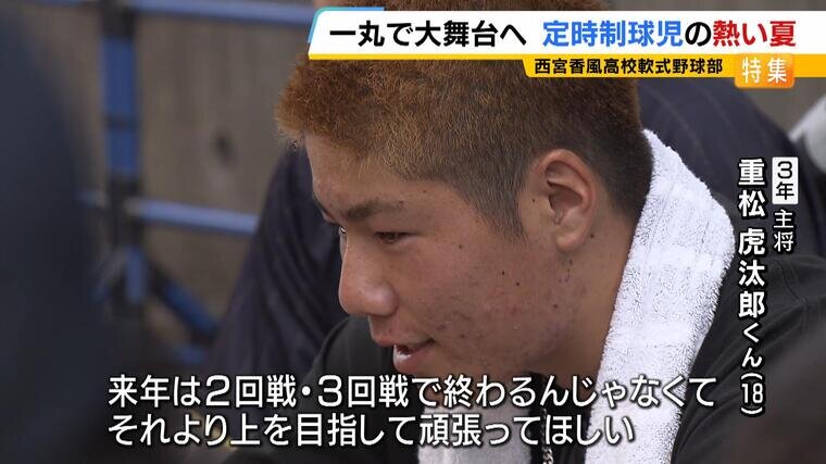 (重松虎汰郎くん)「このメンバーで全国行けたのも、みんなのおかげだし、こんないい球場で試合できたし、みんな悔しい思いしたけど、何かしら学んだことはあると思うので、来年は2回戦・3回戦で終わるんじゃなくて、それより上を目指して頑張ってほしいなと思います」