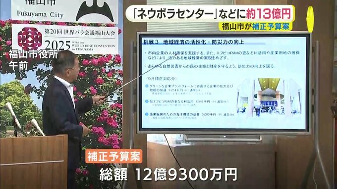 これは福山市の 枝広直幹 市長が会見で明らかにしたもので、補正予算案の総額は12億9300万円。