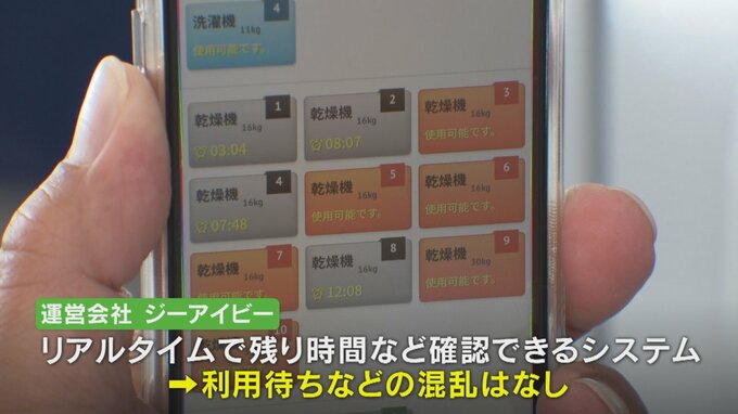このシステムで残り時間や混雑がわかるため、運営会社によりますと利用待ちなどの混乱はなくランドリーは効率よく稼働しているということです。