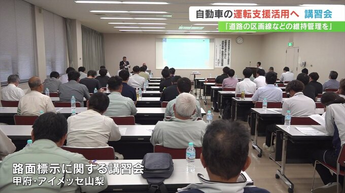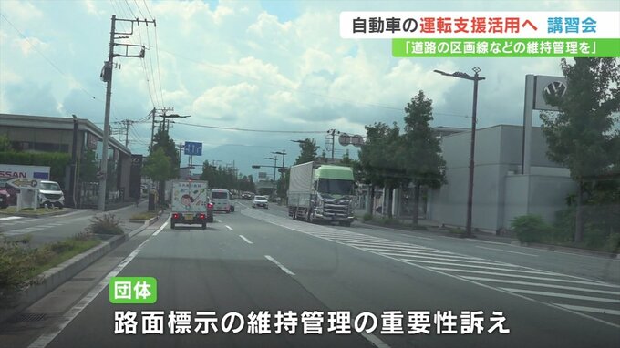 自動車の運転支援装置の活用のために重要になる道路の区画線などに関する講習会が甲府市で開かれました。