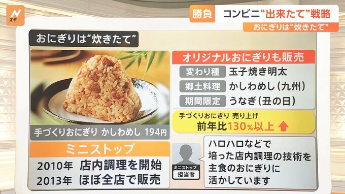 ミニストップの担当者は「ハロハロなどで培った店内調理の技術を、主食のおにぎりに活かしています」と話しました。