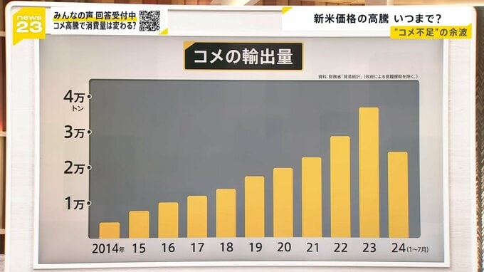 経済の発想から言えば、足りないから値上がりしてしまうわけですよね。ところが、9月3日に農水省が2024年度の1月〜7月の米の輸出高は過去最高だと言っています。