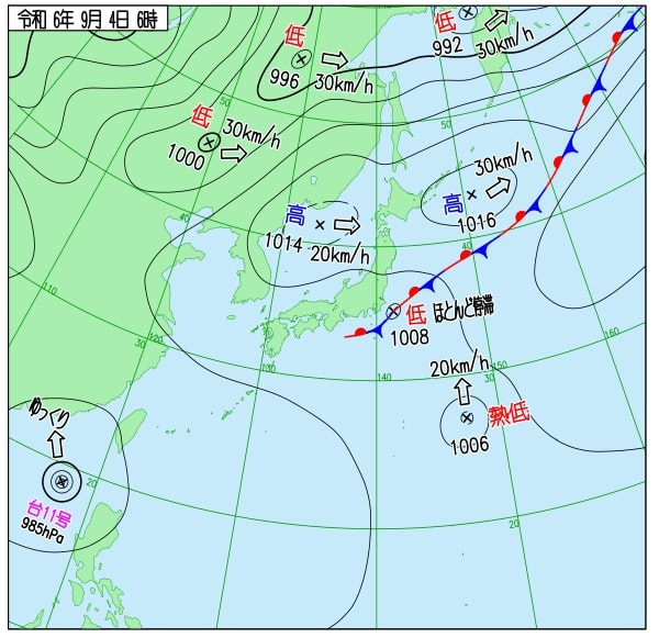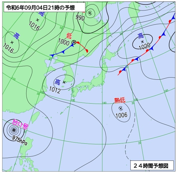 【関東甲信気象情報】暖かく湿った空気が流れ込み大気の状態が非常に不安定に 局地的に雷を伴って激しい雨が降る見込み チューリップテレビ 2024年9月4日(水) 10:09 国内 天気 4にt午前6時の天気図気象庁HPより 4日午後9時の予想天気図気象庁HPより 今後発表する防災気象情報に留意してください。
