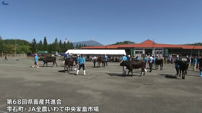 岩手県内で飼育された牛の品質や体型の美しさを競う「畜産共進会」が4日岩手県雫石町で始まり、初日は黒毛和種の審査が行われています。