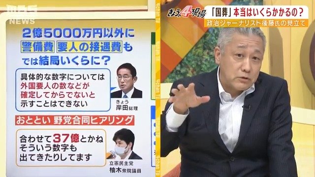―――後藤さんによりますと、「国葬を巡る状況は海外もウォッチしていて、かける金額が少ないとなると、海外から自分たちのリーダーの警備は大丈夫か、そんな声も上がるんじゃないか」と。