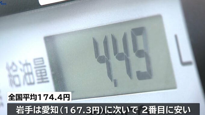 全国平均は174.4円で、岩手は愛知に次いで全国で2番目に安い価格です。