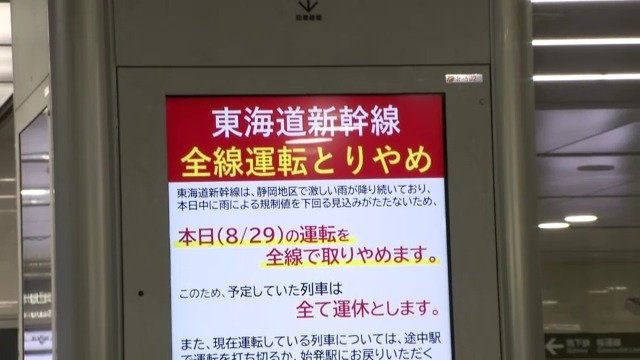 台風10号の影響で、東海道新幹線は8月29日の夕方から東京~新大阪間の全線で運転を取りやめました。