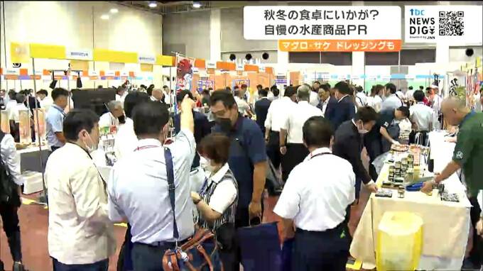 秋冬に旬を迎える魚や水産加工品を一堂に集めた展示商談会が仙台で開かれました。バイヤーたちが試食をしながら目当ての商品を探し求めていました。新鮮なマグロを使った握りずしに、秋に旬を迎えるサケの海鮮丼。…