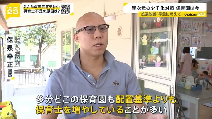 「多分どこの保育園さんも配置基準よりも、保育士を増やしていることが多い」