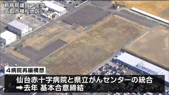 「4病院再編構想」のうち仙台赤十字病院と県立がんセンターの統合は去年、基本合意が締結されています。建設予定地はNTT東日本が所有する名取市植松地区のおよそ4.8ヘクタールの土地で、新病院は2028年度内の開院が見込まれています。