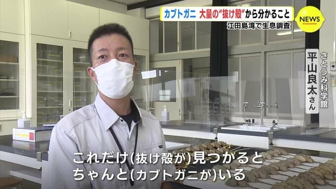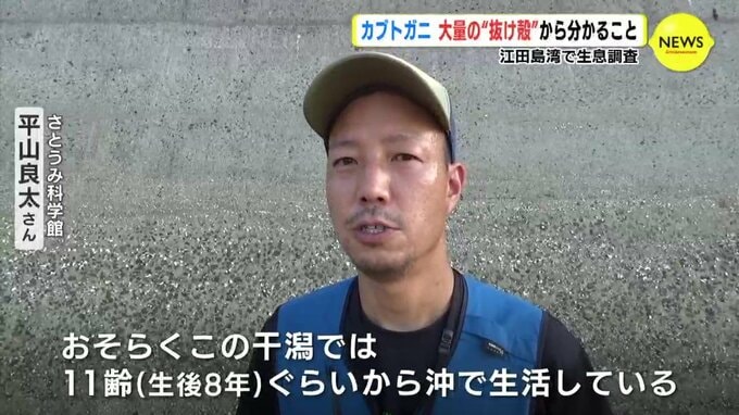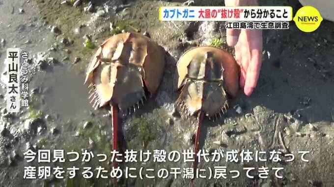 「今回、見つかった抜け殻の世代が成体になっていって、また産卵にこの干潟に戻ってきて、その子どもがまた大きくなってという形で周期的に見られる時期がまた来ると思いますけどね」
