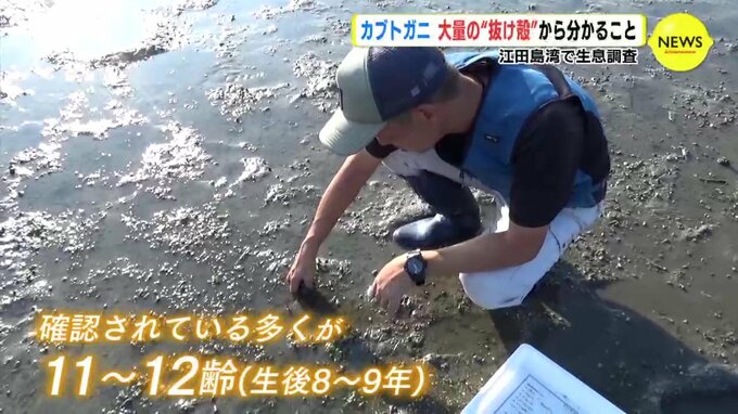 「おそらくですね、この干潟では11齢(生後8年)ぐらいから沖で生活しているっぽいんですよね。脱皮するのに(干潟に)戻ってきて、また沖に戻る生活をしているみたいですね」
