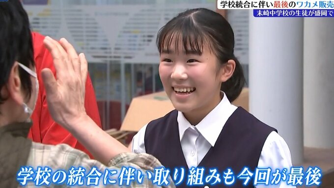 盛岡市でワカメを販売したのは、大船渡市の末崎中学校の2年生19人です。