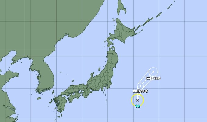 台風12号が発生しました。気象庁によりますと5日午後3時、日本の東にあった熱帯低気圧が台風12号になりました。台風は1時間に15キロの速さで北上していて、6日午後までに熱帯低気圧に変わり日本への直接的な影響はない見込みです。