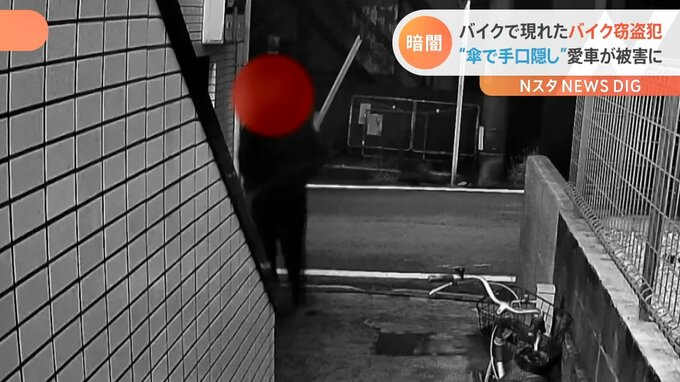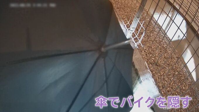 「傘を広げて犯行の手口を隠すような形でオートバイが盗難された。ずいぶん落ち着いてて計画的に犯行に及んでるなって感じ」