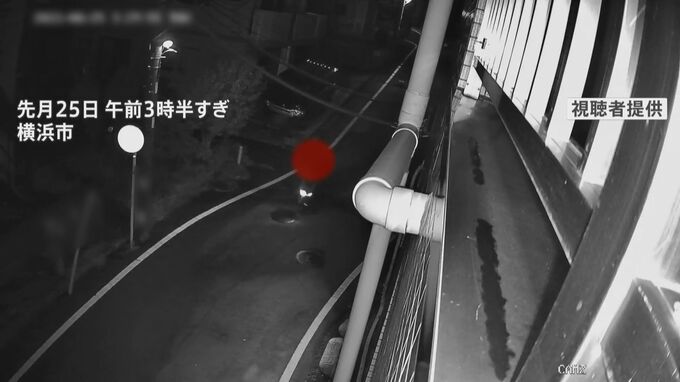 神奈川・横浜市のマンションで撮影された防犯カメラの映像。そこに映るのはバイクでやってきた1人の人物。