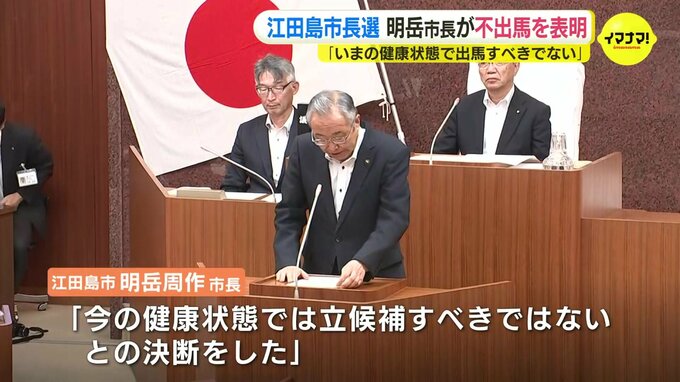 明岳市長は5日の市議会9月定例会で、「病院での検査で体の免疫機能が低下する血液の病気であることが分かり、今の健康状態では立候補すべきではないとの決断をした」と述べて、市長選挙に立候補しない意向を明らかにしました。