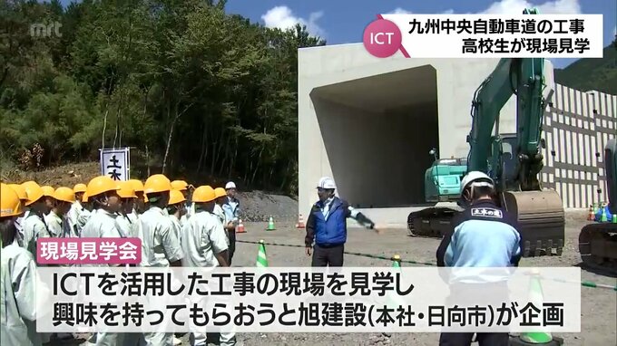 宮崎県五ヶ瀬町で建設が進む九州中央自動車道、蘇陽五ヶ瀬道路の工事現場を高校生が見学しました。これは、ICTを活用した工事の現場を高校生に見学してもらい興味を持ってもらおうと、日向市に本社がある旭建設が…
