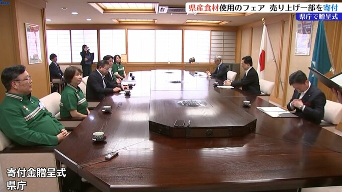 寄付金はこのフェアの売り上げの1%で、県は第一次産業を応援する取り組みに活用する方針です。