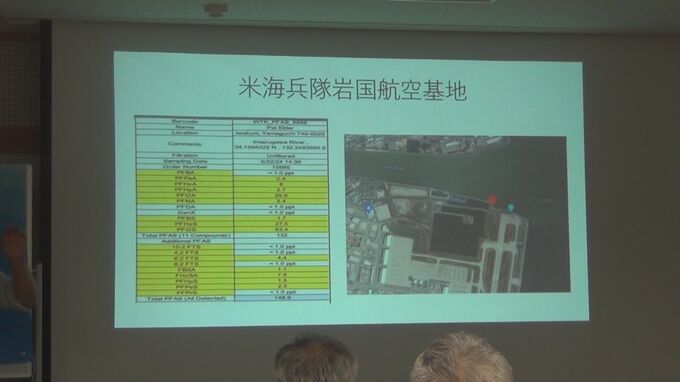 アメリカの平和団体による今年5月の調査では、岩国基地北側の今津川河口付近で採取した水からPFASに該当する物質が1リットルあたり89.3ナノグラム検出されたとの結果も出ています。これは「1リットルあたり50ナノグラム」と定める国の目標値を上回っています。