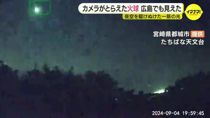 4日夜、広島の夜空に現れた「火球」をカメラがとらえました。4日午後8時前の広島空港です。夜空に一筋の光が見えました。周りの星よりひときわ明るい流れ星=火球とみられます。同じ時間、宮崎県都城市にある天文…