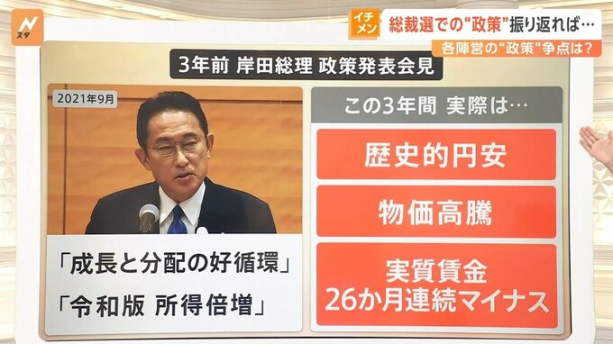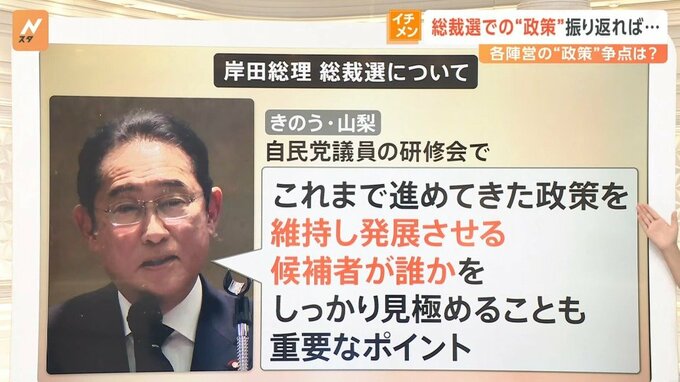 一方、現総理の岸田さんは、4日に山梨で行われた自民党議員の研修会で「これまで進めてきた政策を維持し発展させる候補者が誰かを、しっかり見極めることも重要なポイント」だと話していました。