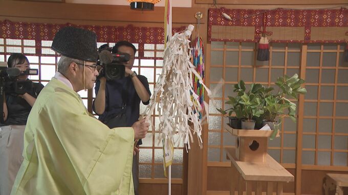 山口県光市の冠天満宮であった神事には、市内や周南市のイチゴ農家6人が出席しました。祭壇には「合格いちご」の苗が供えられ、神職がイチゴを食べた受験生に合格の御利益があるようにと祈願しました。