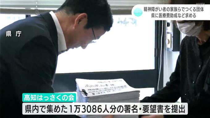 精神障がいのある家族がいる人たちで結成された団体が、高知県に医療費の助成を求める要望書と署名を提出しました。