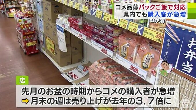 9月末には店に「新米」が入荷する見通しで、それまでの間は「パックご飯」を販売してコメを求める客に対応することにしています。