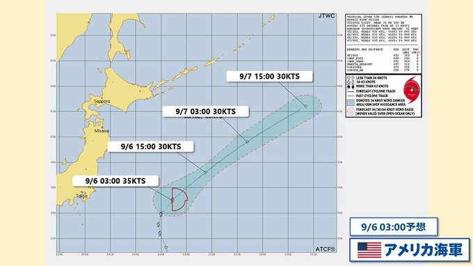このうちアメリカ海軍は、関東の南東の海上にある台風12号についての進路予想を発表しています。気象庁と大きくは変わらず、そこまで発達することはなく日本の東の海上を離れて北上していく予想です。