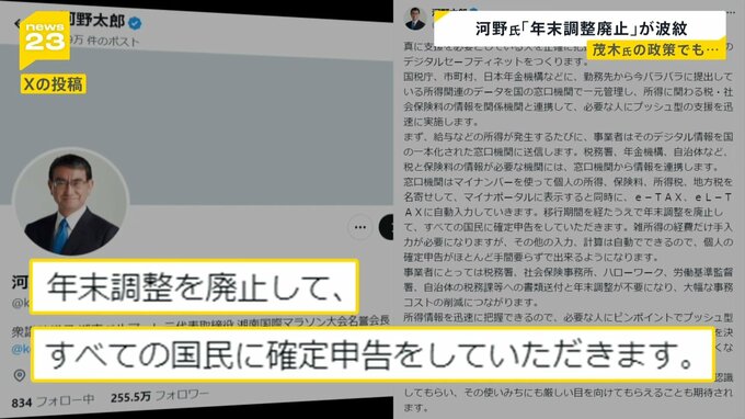 9月3日、自身のXで、年末調整の廃止に言及した河野太郎デジタル大臣。