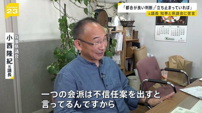 こうしたなか、去年まで兵庫県議会の議長を務めていた小西隆紀氏が取材に応じ、告発後の知事の対応を批判しました。