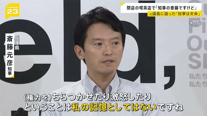 「閉店時間から10分経っても出ないので、『当店は午後3時で閉店です』と声をかけた。すると、真顔で『知事の斎藤ですけど、話し合いしてました』とだけ言って出て行った。知事だったら何をしてもいいの?と捉えた」