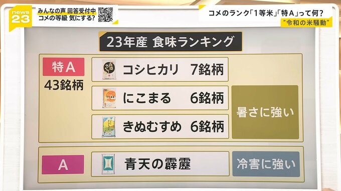 一方、冷害に強い青森県産の「青天の霹靂」は、猛暑の影響で1つランクが下がってしまったそうです。