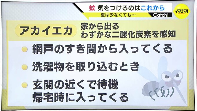 アカイエカは家から出るわずかな二酸化炭素を感知するといいます。寝ている間に刺してくるのがアカイエカです。