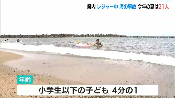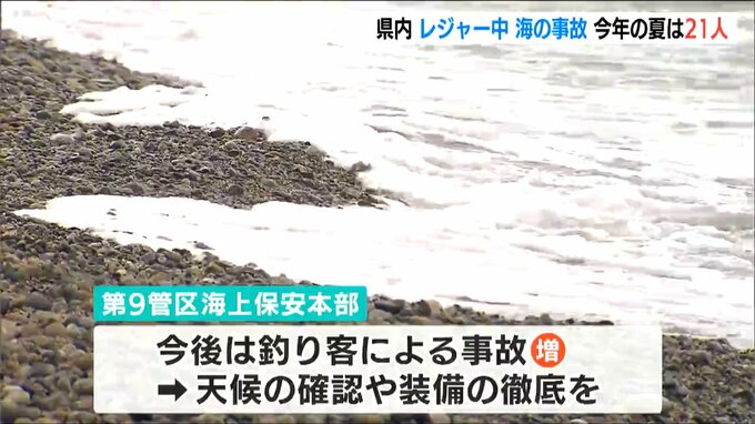 第9管区海上保安本部によりますと、2024年の7月と8月に新潟県内で海のレジャー中に事故に遭った人は21人で、2023年より6人少なく、亡くなった人も2人少なかったことが分かりました。