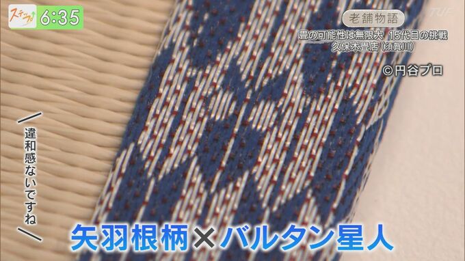 --久保木史朗さん(久保木畳店 15代目)「ウルトラマンの柄を使った畳縁を作っています。伝統的な矢羽根柄とバルタン星人を掛け合わせたデザインでして。」