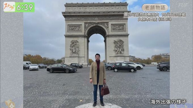 --久保木史朗さん(久保木畳店 15代目)「海外にもチャレンジしたいと思って、4年間で27カ国から注文もらって、畳や畳関連の商品を輸出しています。」