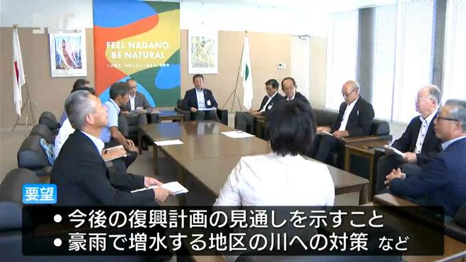 要望では、今後の復興計画の見通しを示すことや、豪雨で急激に増水する地区の川への対策など8つの項目を求めています。