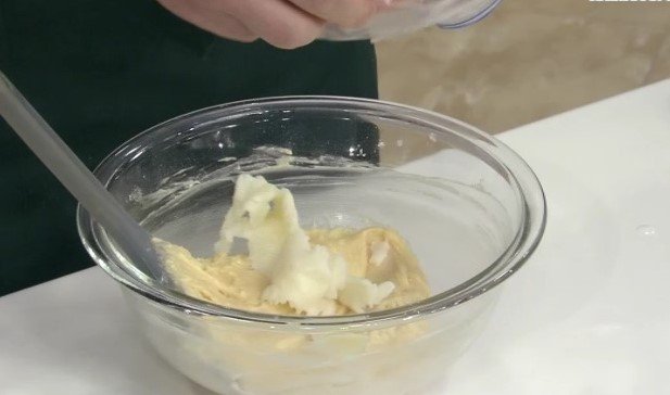 3.耐熱容器に牛乳とバター入れ湯煎(またはレンジ加熱)でバターを溶かし、2に加えてよく混ぜる。