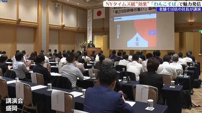 その効果についてわんこそばを通じて盛岡の魅力を世界に発信する老舗そば店社長の講演会が6日、盛岡市で開かれました。